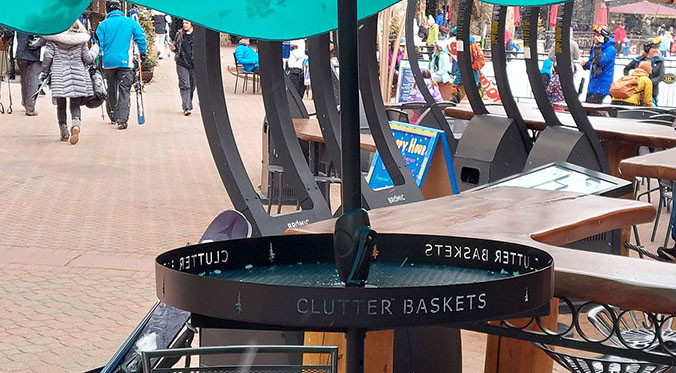 Are there times when you use your business to host events where you don’t want to have Clutter™ Baskets on the tables? Our quick release brackets allow you to remove the baskets in less the 15 seconds with two people and no tools. Rectangle baskets are designed to stack easily and take up less space for storage.