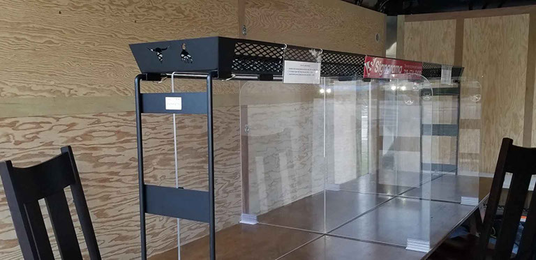 If you want to provide safety barriers between customers sitting at your tables, we have a simple solution. Our plastic barrier system sits under the basket. It is held in place by the basket and requires no tools or fasteners to install.