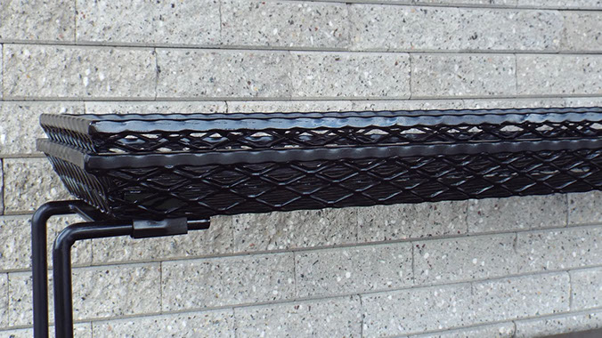 Basic Clutter™ Baskets are made from expanded steel which is powder-coated in your color choice. Other materials, such as stainless steel, aluminum, etc. or perforated metal are available.