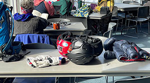- When your customers get their food and drinks, they need a place to put it. If the table is full of helmets, googles, gloves, etc. there isn’t much room left on the table or counter. You don’t want them piling their stuff at the end of the table blocking seats, or worse yet, on another table.